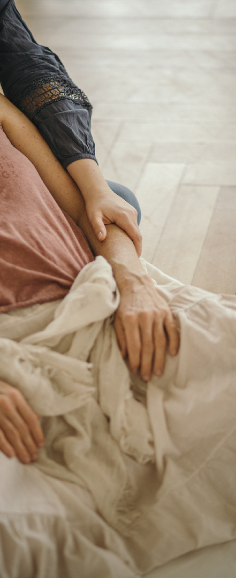 Die traumasensible Körperarbeit wendet sich an Dich, wenn Du Dich entschleunigt, achtsam und mit viel Zeit Deinem Innern wieder öffnen und mit all Deinen Gefühlen und Themen gehört und gewürdigt werden magst. Ich begleite Dich. Wir lauschen Dir und Deinen Empfindungen und nähern uns mit der Frage: "Was nimmst Du gerade in Dir wahr?" Darüber finden wir gemeinsam in die Wahrheit des Hier und Jetzt und in die Verkörperung. Was sich zeigt bekommt Raum, wird gehört und gewürdigt. Darf da sein. Mit dieser inneren Haltung des Annehmens kann aus sich heraus so viel Wandlung geschehen! Den Weg dorthin zeigt uns Dein Körper und Dein tiefer Heimatort in Dir. Es ist erstaunlich wie klar unsere Körper wissen, was sie brauchen ... wenn wir ihnen zuhören! Er weiß genau welcher Abstand stimmig ist, ob er einen bestimmten Ausdruck oder eine achtsame Berührung braucht. Eine Berührung könnte zB eine stille Hand auf einer gemeinsam benannten Körperstelle sein oder zB ein in meinem Schoß liegen. Im Dialog folgen wir Deinen Körperimpulsen und erfahren über diese, was Du gerade brauchst. Jeder Schritt wird gemeinsam vorab von uns besprochen und kann somit das Signal an Dich senden: hier bin ich sicher. Du bist zu jeder Zeit Bestimmende*r auf dieser Reise!
