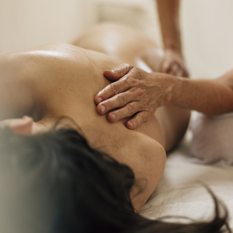 Laß Dich bei Berührungen mit warmen Öl, langsamen Streichungen, Gelenkeentspannung und tiefer Gewebekörperarbeit in eine friedliche Entspannung sinken